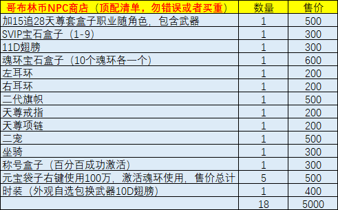 顶配玩家充值后请按上面表格购买顶配装备,称号需要再N商店购买。购买请对清列表